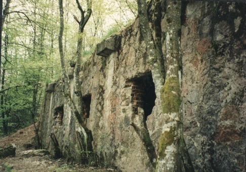 Umstrittene Beseitigung: Im Oktober 1995 wurde die Garage des Berghofs abgetragen, obwohl das zuständige Landesdenkmalamt dies zweimal abgelehnt hatte. Bei der Abtragung kam die auf der Garagenfläche befindliche frühere Berghofterrasse zum Vorschein. Das Material wurde auf Paletten geladen und verschwand danach. (Foto: Geoff Walden)