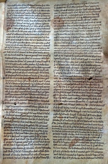 „Die Handschrift ist ein Bruchstück aus einem, in lateinischer Sprache verfassten theologischen Werk über die Prädestination (= göttliche Vorbestimmung) Christi und wahrscheinlich ein Kommentar zu einer der Schriften des hl. Augustinus. Sie stammt aus der 2. Hälfte des 13. Jahrhunderts.“