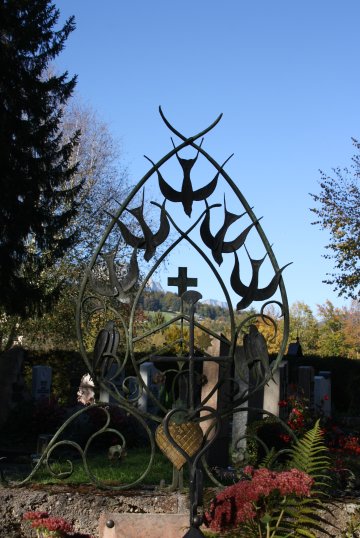 Flatternde Schwalben am Grab
