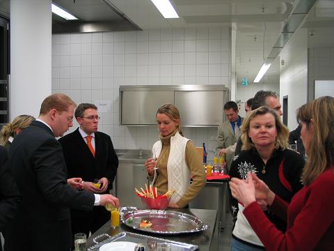 In der Großküche hieß sodann die nahezu komplette neue Führungsmannschaft des Hotels die Besucher mit Prosecco und einem kleinen B?fett willkommen: Die junge, internationale Management-Mannschaft setzt auch hier persönlich auf Integration. Ein reger Gesprächsaustausch brachte eines deutlich hervor: Es darf nicht heißen: "Das sind die von da oben" - sondern man wünscht vor allem auch bei der örtlichen Bevölkerung eingebunden zu sein. Diesen Aspekt will man in Zukunft auch geschäftlich mit besonderen Angeboten und Dienstleistungen unterstützen.